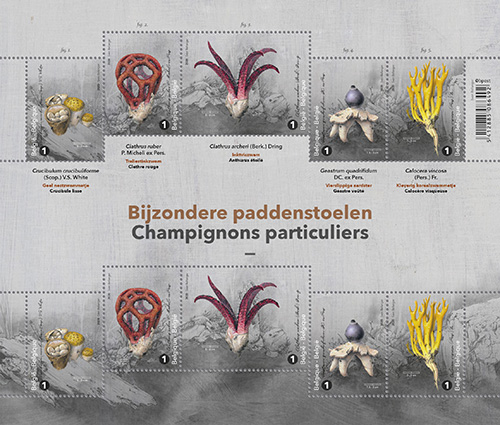 Op 26 november verscheen verder een velletje met vier wetenschappelijk getekende paddenstoelen, te weten: geel nestzwammetje, traliestinkzwam, inktviszwam, vierstippige aardster en kleverig koraalzwammetje. De zegels hebben de waardeaanduiding1 (oplage 34.005).