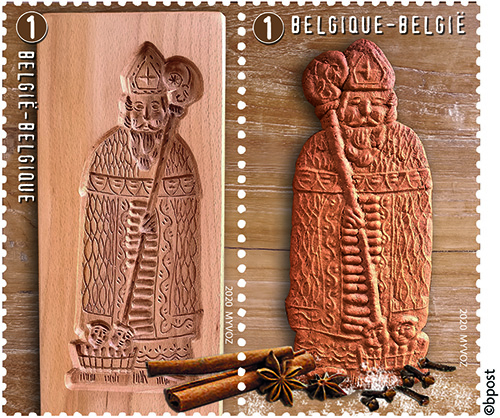 Dan met als motto ’geen sinterklaas zonder speculaas’ een velletje waarop twee speculaasplanken worden verbeeld: op de bovenste plank Sinterklaasfiguren en kaneelstokjes, op de onderste speculaas met Sinterklaasfiguren en speculaaskruiden, waaronder kruidnagel en steranijs. In het velletje tien zegels met de waardeaanduiding 1 (oplage: 32.010).