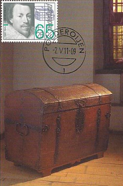 Het roemruchte verhaal van deze ontsnapping werd door de publicatie van de biografie door Gerard Brandt, een van de klassiekers van de Nederlandse geschiedschrijving. Zozeer zelfs dat op diverse plaatsen, onder andere in het Rijksmuseum in Amsterdam en in de Prinsenhof in Delft, maar ook in New York en op Loevestein zelf, kisten worden bewaard waarvan gezegd wordt dat Hugo de Groot daarin ontsnapte. Is het misschien de boekenkist op onderstaande maximumkaart? In Poederoijen, gemeente Zaltbommel (zie stempel) staat het slot Loevestein.