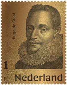 Vandaag wordt er ook een gouden postzegel van Hugo de Groot uitgegeven.