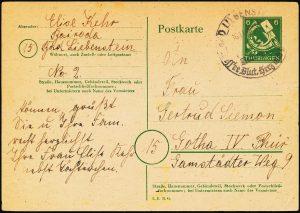 Losse postzegels met afdrukken van stempelfragmenten waarvan het stempel niet te herleiden is tot een plaatsnaam en datum, zijn niet door verzamelaars gewild. Zoals de afdruk op de zegel van 8 Pfennig. Ook al worden ze soms aangeprezen als ‘prachtig gebruikt’. Deze afdrukken zijn meestal aangebracht op verzoek van verzamelaars en hebben geen postale functie gehad. Anders is het als een deel van de plaatsnaam te zien is. Want dan kan het raadplegen van de lijst met plaatsnamen van Thüringen uitkomst bieden. In dit geval staan de letters ..RDEN voor het dorp BÜRDEN bij Hildburghausen in het zuiden van Thüringen. Een andere mogelijkheid is er niet. Toch maar bewaren in afwachting van een beter exemplaar met volledig herkenbare plaatsnaam. De meest voorkomende stempelafdrukken zijn van de grote steden Erfurt, Gera, Gotha, Jena en Weimar.