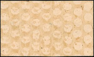 De serie postzegels werd, door de nood gedwongen, geproduceerd op twaalf (!) verschillende papiersoorten variërend van wit, geelachtig, bruinachtig tot grauw papier. En dan nog in verschillende dikten van dun tot kartonachtig papier. Het paartje ongetande zegels van 20 Pfennig is gedrukt op lichtbruin getint papier met houtvezeltjes, een van de vele soorten papier dat is gebruikt.