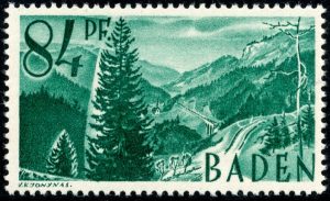 De deelstaat Baden gaf de eerste serie van dertien frankeerwaarden uit vanaf 1 mei 1947. Het waren postzegels met afbeeldingen van persoonlijkheden, gebouwen en landschappen die betrekking hadden op de deelstaat. Op de afgebeelde postzegels zijn het kasteel Rastatt, dichter Johann Peter Hebel en het Hollental in het Zwarte Woud te zien. Deze serie kreeg een vervolg in juni 1948 en in november 1948.