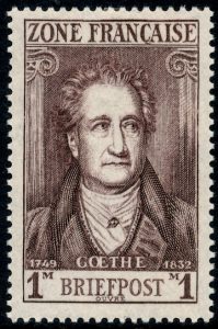 Verder verscheen op 17 december 1945 een postzegel in de waarde van 1 Mark met een afbeelding van de dichter Johann Wolfgang von Goethe, ontworpen door Achille Ouvré. Ouvré was een Franse illustrator en graveur geboren op 26 juli 1872 in Parijs. De postzegel was gedrukt in vellen van 25 stuks in rotatiediepdruk.