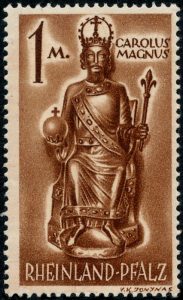 De deelstaat Rheinland-Pfalz gaf een eerste serie van vijftien waarden uit vanaf 5 mei 1947, eveneens met afbeeldingen van persoonlijkheden, gebouwen en landschappen die betrekking hadden op de deelstaat. Op de postzegels zijn de Porta Nigra in Trier, de Dom van Worms en Karel de Grote in Aken afgebeeld. Ook hier een vervolg vanaf 21 juni 1948 en november 1948.