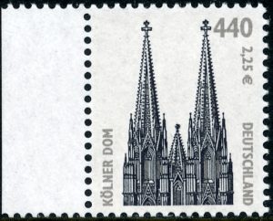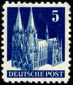 De Dom van Keulen werd opgenomen in de serie permanente postzegels die in de door westerse geallieerden bezette gebieden van Duitsland uitkwam. De postzegel van 5 Pfennig werd voor het eerste verkrijgbaar gesteld op 1 september 1948. Ontwerper was Max Bittrof die voor deze serie zes verschillende postzegelafbeeldingen had gemaakt.