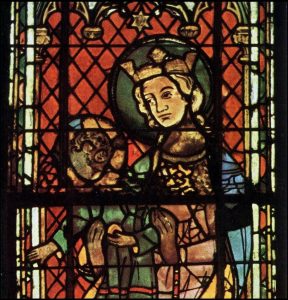 Een fragment van het raam is afgebeeld op de uitsnede van de prentkaart. Het raam bevindt zich in het koorgedeelte van de kathedraal en maakt deel uit van het zogenoemde ‘driekoningenvenster’. Dit raam heeft een hoogte van 17,15 meter en werd tussen de jaren 1304 en 1311 geplaatst. Het totale oppervlak van dit raam bedraagt 1.350 vierkante meter.