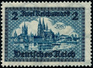 Voor de Tweede Wereldoorlog verschenen twee postzegels met een afbeelding van de Dom van Keulen. De eerste werd uitgegeven in juli 1923 met een frankeerwaarde van 10.000 Mark. Het ontwerp van de postzegel was vervaardigd de Rijksdrukkerij in Berlijn. Vanwege de snel oplopende inflatie was deze zegel slechts geldig voor de frankering tot en met 30 november 1923. De tweede zegel verscheen op 11 mei 1924 met de waarde van 2 Mark. Ook deze zegel werd eveneens ontworpen door de Rijksdrukkerij. Links van de Dom de Romaanse Grote Sint-Martinus basiliek met de vierkante vieringtoren waarop vier hoektorentjes. De geldigheid voor de frankering van de postzegel eindigde op 31 december 1938. Vanwege de wijziging van de waardeaanduiding Mark in Reichsmark werd in 1930 een herdruk van de tweede zegel uitgegeven met de nieuwe waardeaanduiding 2 Reichsmark. Deze zegel bleef eveneens geldig voor de frankering tot en met 31 december 1938.