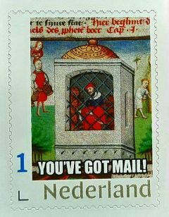 Oud en nieuw komen samen op deze persoonlijke postzegel van de Koninklijke Bibliotheek (KB). Deze zegel is te koop bij de KB en gemaakt met deze tool: