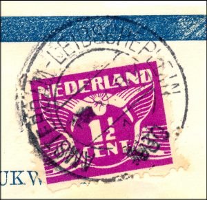 Een tweede aanwijzing dat de envelop ‘formeel’ met de KLM vlucht mee moest gaf de stempelafdruk van AMSTERDAM-LEIDSCHEPLEIN. Hier was namelijk het kantoor en passagebureau van de KLM gevestigd dat al vanaf mei 1921 bestond. En het poststukje was hier voor verzending aangeboden.