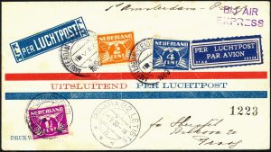 Een bevriende relatie stuurde mij een kopie van een bladzijde uit de Luchtpostcatalogus van 1948 samengesteld door de heer R. Tocila. Deze catalogus was de eerste officiële uitgave van de Nederlandsche Vereeniging van Aero-philatelisten ‘De Vliegende Hollander’. Op bladzijde 106 van deze catalogus was vermeld: N.B. De volgende stukken die vaak de aanduiding eerste of spec. vlucht dragen, verdienen deze benaming niet: 1-5-1930: Amsterdam-Rotterdam-Allicante; Amsterdam-Hamburg; Amsterdam-Karlsruhe; Amsterdam-Constanz; Amsterdam-Leipzig; AMSTERDAM-PRAAG; Amsterdam-Barcelona en Amsterdam-Wenen. Wanneer vond wel een eerste vlucht plaats vanuit Nederland naar Praag? Dat was op 23 april 1928 van Rotterdam via Kassel naar Praag, verzorgd door de CLS, de ‘Ceskoslovenská Letecká Spolecnost’ uit Tsjecho-Slowakije. De terugvlucht was op 30 april 1928. De luchtpost kwam steeds vaker met buitenlandse luchtvaartmaatschappijen aan in Nederland. Albert Plesman, toenmalig directeur van de KLM zei hiervan ‘Te vaak heeft de KLM de exploitatie van lijnen welke voor haar toekomstige ontwikkeling van het grootste belang geweest zijn, moeten overlaten aan het buitenland, omdat zij niet over voldoende middelen beschikte’. Dat zou echter snel veranderen, vooral na de oorlogsjaren. Toch krijgt deze envelop een plaatsje in mijn verzameling, maar wel met de aantekening: ‘verzorgd door de CLS’. Ook geïnteresseerd in luchtpost en eerste vluchten? Kijk dan eens op de website van de Vliegende Hollander: www.de-vliegende-hollander.com. Goede vlucht gewenst!