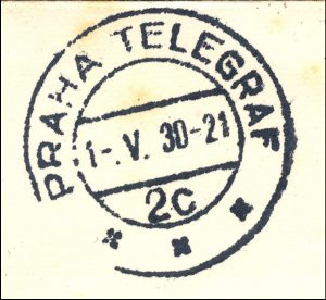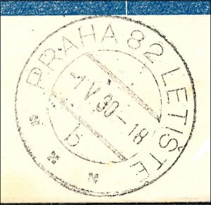 Toch was de envelop op 1 mei 1930 in Praag aangekomen want op de voorzijde was een stempelafdruk aangebracht van PRAHA 82 LETIŠT? en op de achterzijde een afdruk van PRAHA TELEGRAF. ‘Letišt? Václava Havla Praha’ is de volledige naam van het vliegveld van Praag. Was de heer Boesman deze vlucht vergeten?