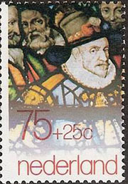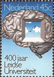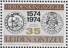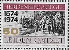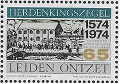 Willem van Oranje was blij dat Leiden zich ondanks de hongersnood niet had overgegeven en beloonde Leiden daarvoor met een Universiteit. Op de zegel van 65 zien we het Academiegebouw op het Rapenburg in Leiden. In 1975 bestond de Leidse universiteit 400 jaar.