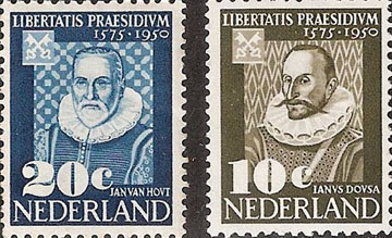 Jan van Hout en Jan van der Does staan ook afgebeeld op de postzegels uit 1950, die werden uitgegeven in verband met 375 jaar Leidse Universiteit. Burgemeester Van der Werff, die volgens een legende zijn arm als eten aanbood, toen de hongerige menigte om eten schreeuwde, heeft in Leiden een standbeeld gekregen, die we zien op een 3 oktober-sluitzegel.