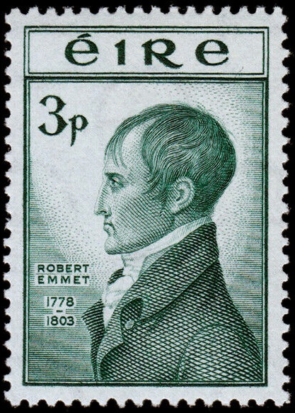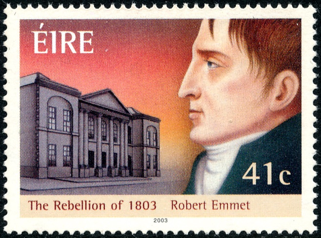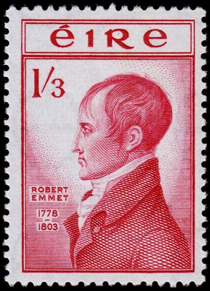 Robert Emmet was na het mislukken van de opstand gevlucht en ondergedoken in het dorpje Harold’s Cross in het zuiden van Dublin. Hier werd hij op 25 augustus 1803 gearresteerd en opgesloten in de gevangenis van Kilmainham Gaol. Op 19 september 1803 werd hij berecht wegens hoogverraad. Zijn verdediger, advocaat Leonard McNally, was door de Britten omgekocht om zwakke punten in de pleidooien van de Britse aanklagers te negeren tegen een som van £ 200. Opperrechter Lord Norbury veroordeelde Emmet om te worden opgehangen en gevierendeeld. De volgende dag, 20 september 1803, werd Emmet geëxecuteerd in Thomas Street en na zijn dood onthoofd. Op de postzegels van 1953 is zijn portret afgebeeld dat is vervaardigd door graveur Henry Brocas. Hij had de opdracht van ‘Dublin Castle’, de rechtbank, gekregen na de arrestatie van Emmet op 25 augustus. Het zou nog tot 1922 duren voordat de idealen van de nationalisten in Ierland in vervulling gingen en een vrije staat Ierland ontstond.