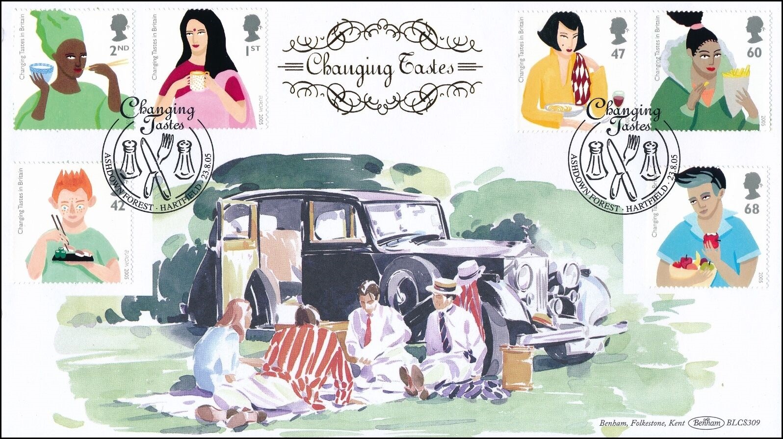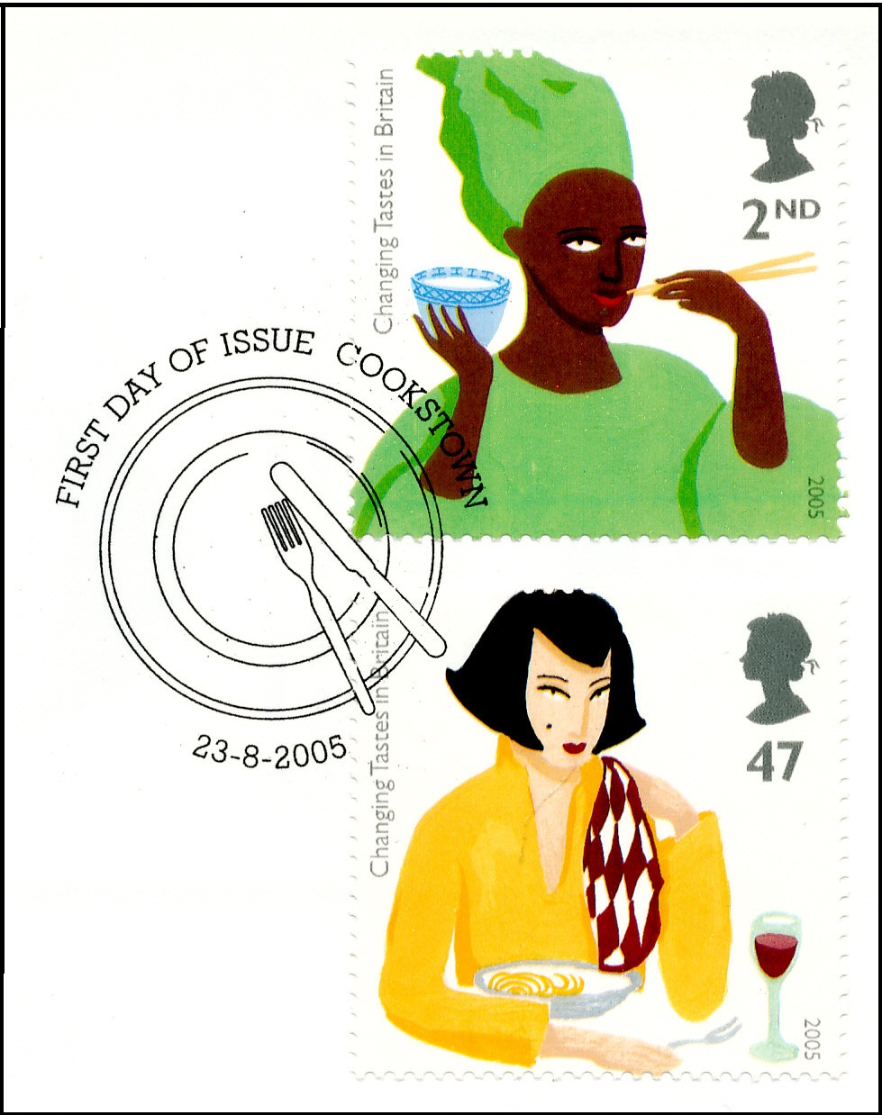 Van de Britten wordt vaak gezegd dat ze voor wat betreft eten geen smaak hebben. En dat ze geen lekkere gerechten kunnen klaarmaken. Dat was vroeger soms wel het geval maar de tijden zijn veranderd. Ook in Groot-Brittannië zijn de ontwikkelingen op het gebied van voeding en eetgewoonten zeer snel geweest. Getuige de serie postzegels die Royal Mail op 23 augustus 2005 uitgaf met de titel: ‘Changing Tastes in Britain’.