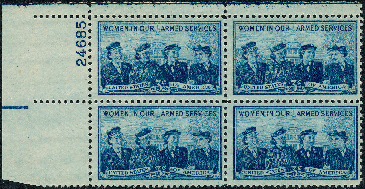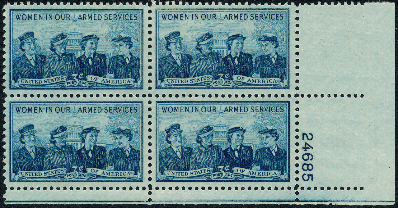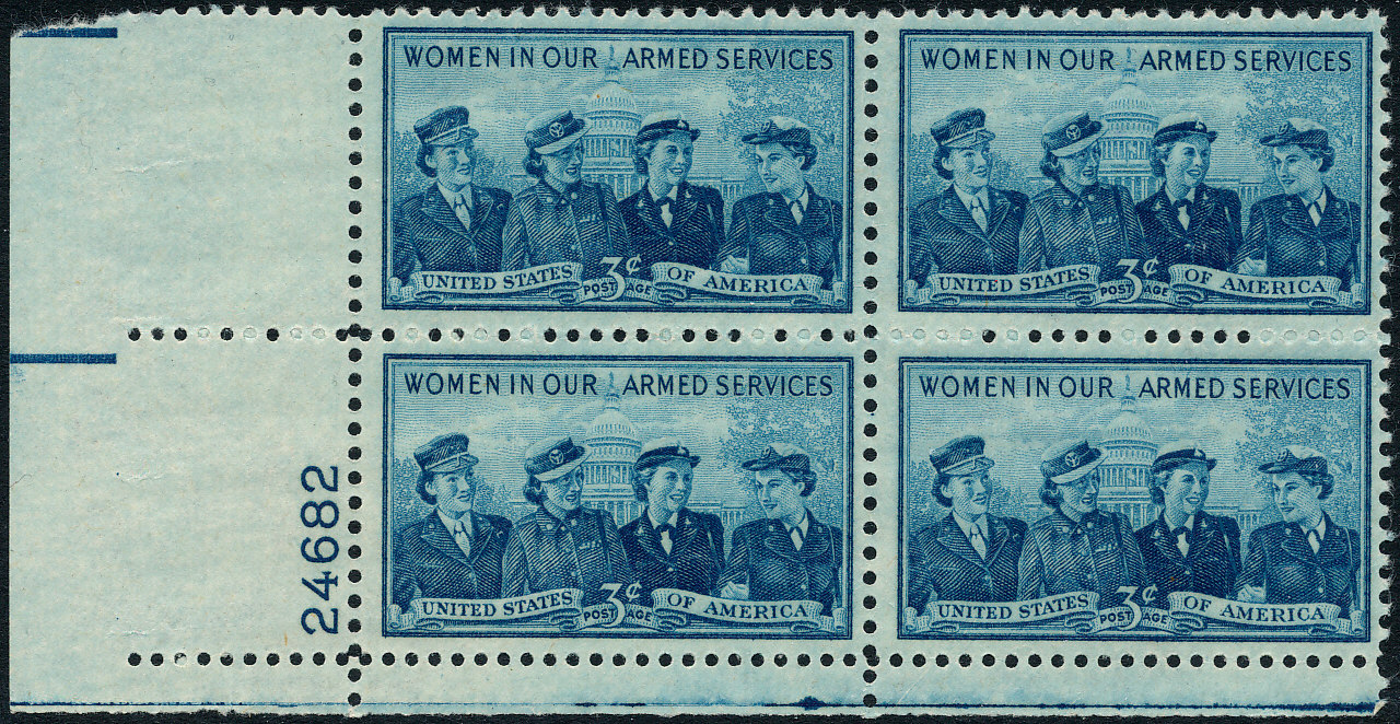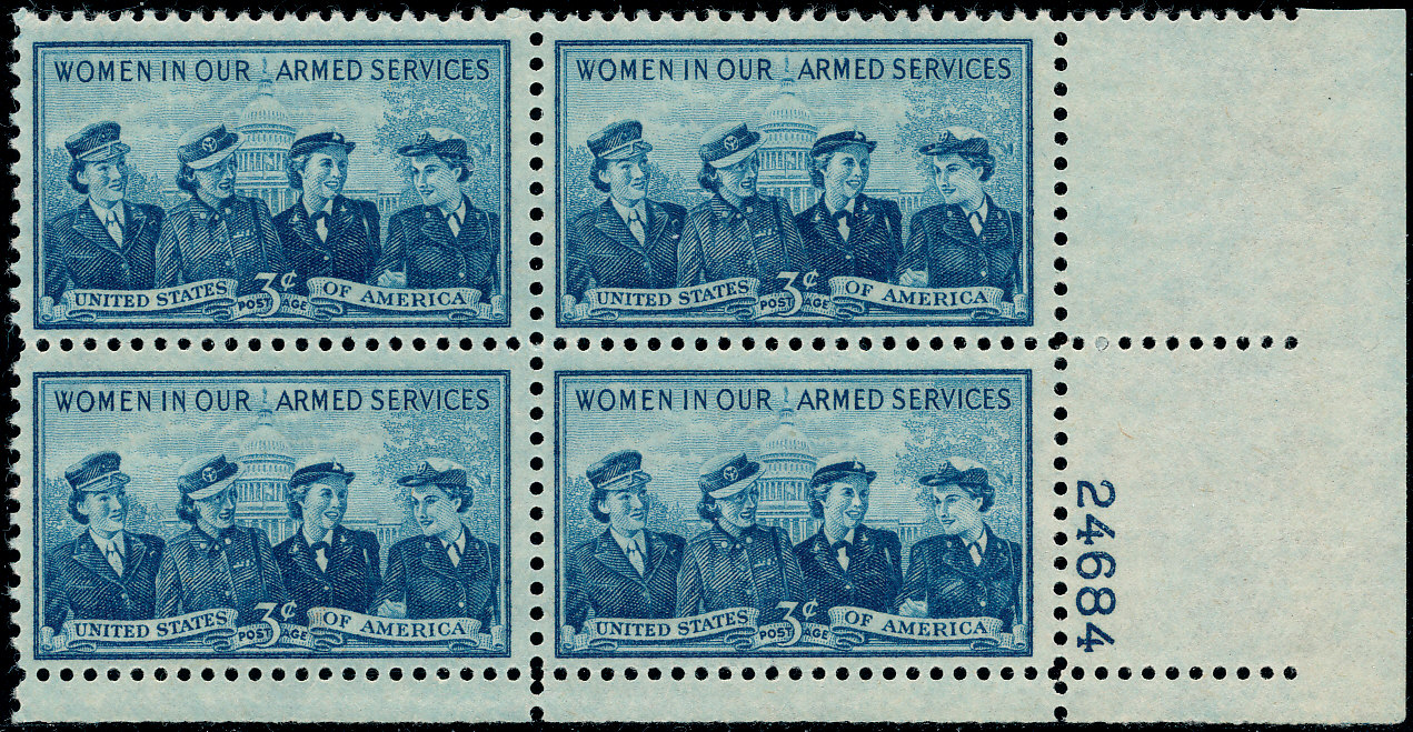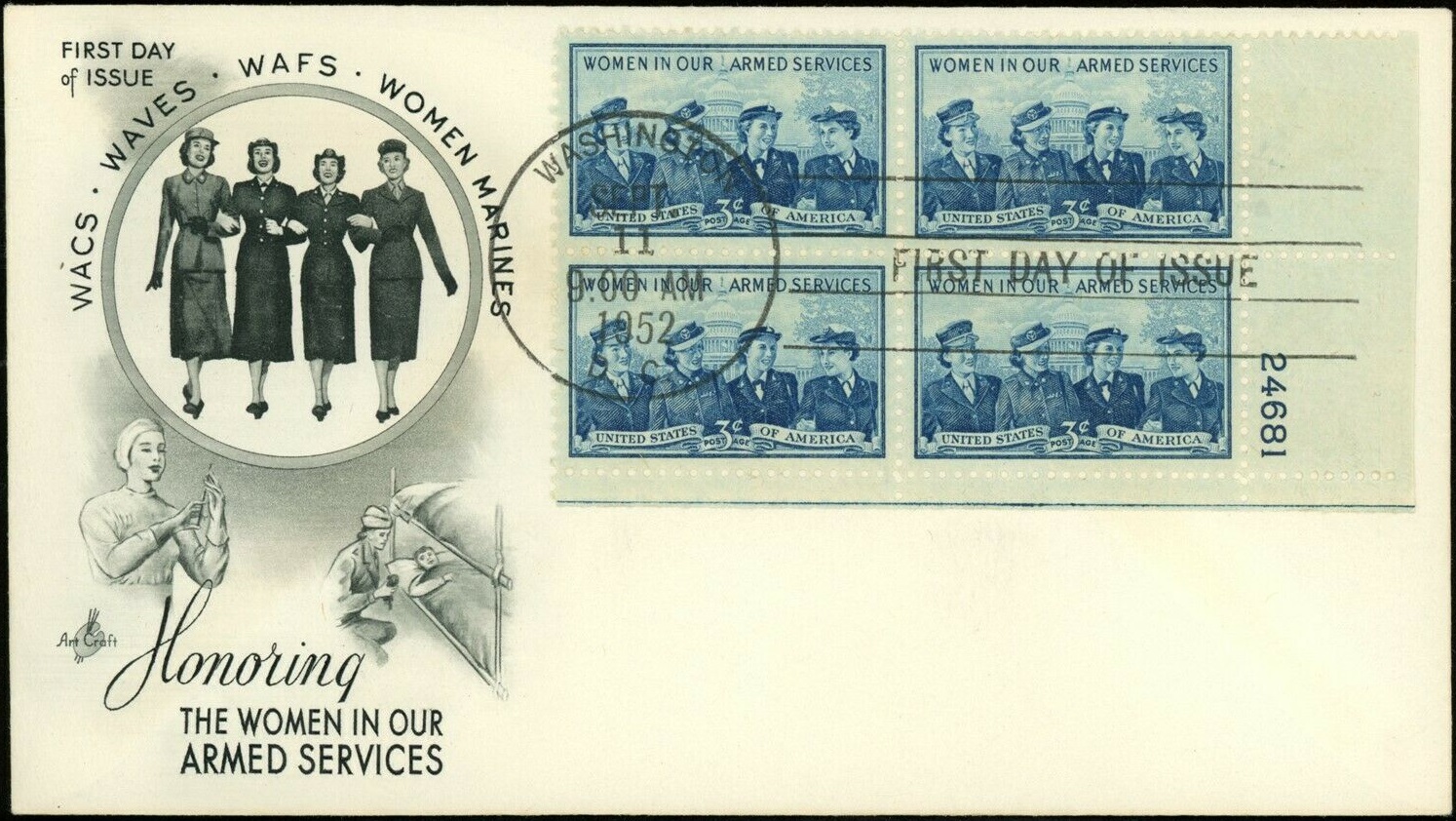 Ten behoeve van de verbetering van verbindingen gedurende de Eerste Wereldoorlog tussen legeronderdelen en hoofdkwartieren via radio, telegraaf en telefoon werd in 1917 het ‘Army Signal Corps’ opgericht. Ook dit onderdeel van het leger bestond uit louter vrouwen. Een van de belangrijkste taken was de bediening van de telefooncentrales tussen de veldtelefoons van de commandoposten en het hoofdkwartier. Ze werden ‘Hello Girls’ genoemd. Pas vanaf 1918 kregen de vrouwelijke militairen eigen uniformen. Militaire rangen werden ook ingevoerd vanaf tweede luitenant tot majoor, afhankelijk van de belangrijkheid van de post die werd bekleed. In 1942, gedurende de Tweede Wereldoorlog, werden meer vrouwencorpsen opgericht zoals de ‘Marine Corps Women’s Reserve’ en het ‘Women’s Army Corps’, de WAC. In 1943 werd dit uitgebreid met de ‘Army Air Forces’, de ‘Air WACs’ of WAFS. De vier vrouwencorpsen werden door hun vertegenwoordigers afgebeeld op de postzegel van 11 september 1952 met op de achtergrond het Capitool in Washington D.C. waarvan de eerste steen werd gelegd op 18 september 1793. Ontwerper van de postzegel was William K. Schrage. Hij koos daarvoor bestaande foto’s die echter waren vervaardigd met behulp van fotomodellen die hadden geposeerd ten behoeve van een wervingsfolder. De afgebeelde vrouwen waren nooit in militaire dienst geweest.