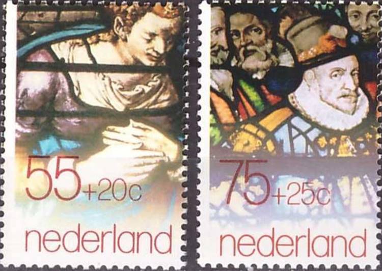 Ook de zomerzegels uit 1979 laten ons 2 Kerkramen van de Goudse Sint-Janskerk zien. Deze zomerzegels, met eveneens een toeslag, tonen fragmenten van ramen. Op de zegel van 55+20ct staat ‘Maria’ uit Glas nummer 12 ‘De Geboorte van Christus’; op de zegel van 75+25ct staat Willem van Oranje uit Glas nummer 25 ‘Het ontzet van Leiden’.