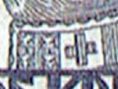 - De met kleur gevulde, volumineus-hoekige letters zijn voor een witte achtergrond door drie kaderlijnen tot een eenheid samengesmolten. Dezelfde benadering is ook op beide jaartallen toegepast, waarbij de kaderlijnen ontbreken. Linksboven is de frankeerwaarde in de achtergrondkleur uitgespaard.