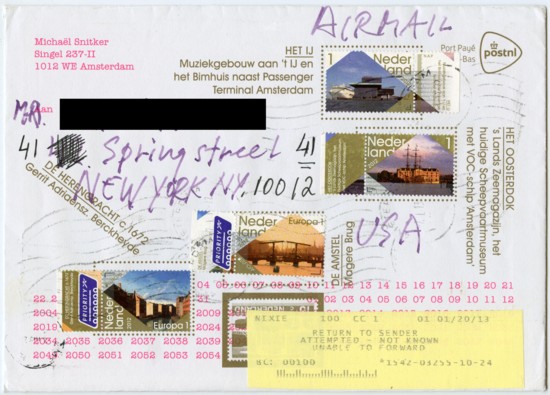Europazegel-ontwerper Michaël Snitker heeft voor het exclusieve gebruik van de ‘Bezoek Amsterdam’ postzegels een gelimiteerde oplage van 100 EA5-enveloppen vervaardigd. Daarbij maakte hij gebruik van zijn eigen envelop, waarop hij een goudkleurige overdruk heeft laten plaatsen. De positie van de vakjes op de envelop, waarop de postzegels geplakt (kunnen) worden, komt overeen met de locatie op de plattegrond van Amsterdam. Op de achterkant van de envelop is een deel van de tekst van het postzegelblog-artikel geplaatst.