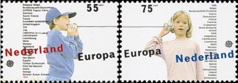 Deze postzegels verbeelden de communicatie tussen Nederland en Europa dat op taalkundige wijze door links van de jongen alle 26 CEPT-landen in eigen landstaal te vermelden en rechts van het meisje de namen ervan in het Nederlands. Aldus wordt het voor de CEPT zo belangrijke begrip ‘communicatie’ op verrassende wijze inhoudelijk in beeld gebracht.