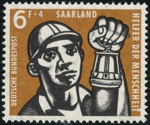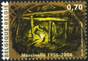 De Belgische postdienst ‘De Post’ gaf op 5 augustus 2006 een postzegel uit ter herdenking van de catastrofe die het stadje Marcinelle trof door de grootste mijnramp in de geschiedenis van dat land. 275 Mijnwerkers gingen in de ochtend van 8 augustus 1956 in de twee liftschachten naar beneden in de steenkolenmijn ‘Bois du Cazier’. Van hen zouden 262 mijnwerkers niet meer levend bovenkomen. Er ging iets vreselijk mis op 975 meter diepte. De postzegel van België ter herdenking van de mijnramp werd ontworpen door Calisto Peretti.