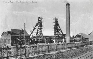 Op de prentkaart van voor de Tweede Wereldoorlog is de kolenmijn afgebeeld met de twee torens boven de liftschachten. Toestemming om in Marcinelle met de mijnbouw te beginnen werd in 1822 gegeven door koning Willem I der Nederlanden. De mijn werd genoemd naar de eerste eigenaar van het terrein Jean-Baptiste De Cazier die in 1812 was overleden. De mijn werd gesloten in 1891 vanwege grauwvuur, een explosie van kolenstof, vergelijkbaar met mijngas. In 1899 werd de mijn weer in bedrijf gesteld door een nieuwe eigenaar. Een derde mijnschacht werd geboord vanaf 1954 maar was in 1956, toen de ramp plaatsvond, nog niet geheel gereed.