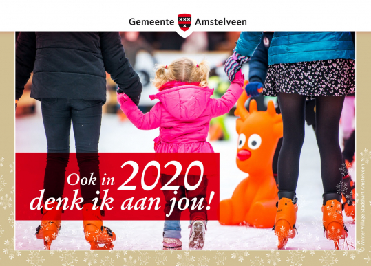 Ook in 2020 denk ik aan jou!’ is de boodschap die gemeente Amstelveen meegeeft op een speciaal voor de feestdagen gemaakte ansichtkaart. De bedoeling is dat Amstelveners met de kaart aan elkaar kunnen laten weten dat ze aan elkaar denken. Met de ansichtkaart vraagt de gemeente aandacht voor elkaar. ‘Bijvoorbeeld voor iemand die het goed kan gebruiken in de donkere dagen rond kerst en oud en nieuw,’ meldt de gemeente. Het college van B en W deelt de kaarten op 20 december 2019 uit in het Stadshart. De gratis kaarten liggen ook in het raadhuis en zijn eveneens verkrijgbaar in Schouwburg Amstelveen, het Cobra Museum en Museum Jan van der Togt. Bezoekers van het raadhuis kunnen de kaart ter plekke schrijven en in de speciaal voor de actie gemaakte gele postbus doen. De gemeente verstuurt ze dan. Natuurlijk kunnen Amstelveners ook kaarten meenemen en later zelf versturen. Bron: Amstelveenz.nl