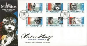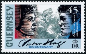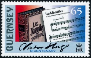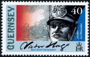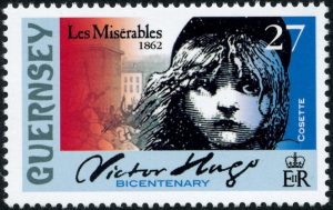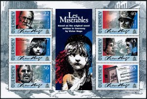 Ongetwijfeld is het boek ‘Les Misérables’ van de verbannen schrijver en dichter Victor Hugo een van zijn bekendste werken. Hij begon aan de roman in 1842 en in maart 1862 werd het boek gepubliceerd. De roman werd voor het grootste gedeelte geschreven in zijn huis ‘Hauteville House’ op het eiland Guernsey. Op 6 februari 2002 gaf de postdienst van Guernsey een serie van zes postzegels alsmede een blokje uit gewijd aan ‘Les Misérables’.