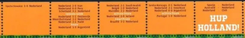 In 1974 en 1990 zijn door het mislopen van het kampioenschap van ons land wel postzegels vervaardigd, maar zijn niet uitgegeven. Met de vermelding van het WK-programma van Oranje speelde het postbedrijf op safe.