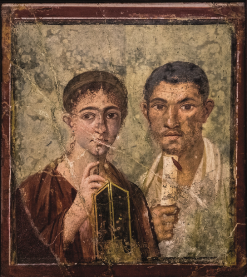 Bijna 50 jaar later is deze fresco te zien met portret van de bakker Terentius Neo en zijn vrouw, 1e eeuw na Chr., vindplaats Pompeï (Bron en foto Museo Archeologico Nazionale in Napels). Een van de hoogtepunten van de huidige expo. Als u niet weer 50 jaar wil wachten…..