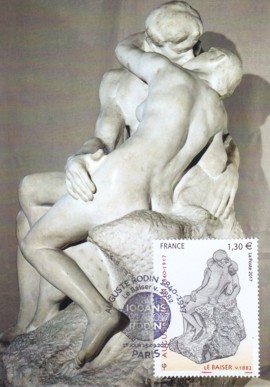 Voor de beeldengroep ‘De kus’ (nvph 1432) laat beeldhouwer Rodin zich inspireren door het liefdesverhaal van de Italiaanse schrijver / dichter Dante (1265 – 1321) over Paola en Francesca. Het verhaal is afkomstig uit ‘La divina commedia’ (De goddelijke komedie) over de reis naar het hiernamaals via hel en vagevuur.