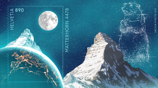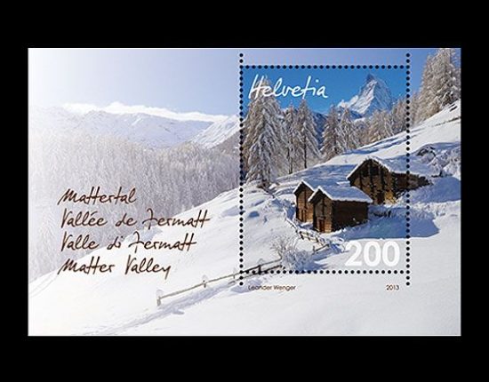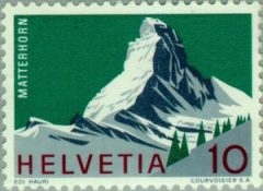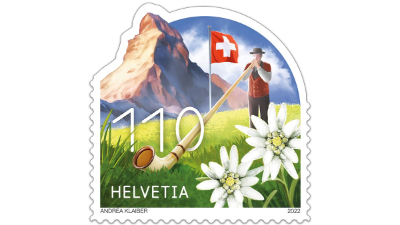 Bergen, natuur en folklore – een clichématiger beeld van Zwitserland kun je niet krijgen. Maar het heeft geen zin om dingen in tweeën te doen: op de postzegel staat de Matterhorn afgebeeld, een symbool van Zwitserland en een van de bekendste bergen ter wereld. Dan is er edelweiss, de beroemdste bergbloem van allemaal. En ten slotte de alpenhoorn en de herder die erop speelt.