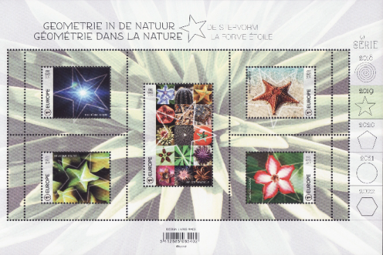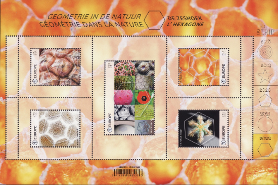 Op 22 april 2024 gaf PostNL een mooi velletje ‘De vormentaal van de natuur’ uit. Is deze uitgifte origineel voor Nederland, maar de Zuiderburen, dus België waren ons voor. Bpost gaf elk jaar van 2018 tot en met 2022 een velletje uit met als thema ‘Geometrie in de natuur’. Verzamelt u België dan heeft u vast deze velletjes in uw collectie. Kijk en vergelijk met onze uitgifte.