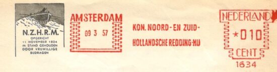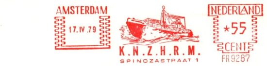 Nederland (1974): 150 jaar Reddingjaren met vlagstempel KNZHRM en KZHMRS. Bron: Posthistorie.nl