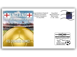 Op de dag dat Engeland Europees Kampioen werd, had Royal Mail een speciale afstempeling gereed. Zie blog.
