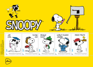 Ter gelegenheid van het 75-jarige jubileum van stripfiguur Snoopy geeft PostNL op 11 augustus 2025 het postzegelvel Snoopy 75 jaar met 5 kaderpostzegels uit. Op alle postzegels staat de waardeaanduiding 1 voor post tot en met 20 gram met een bestemming binnen Nederland. Het ontwerp van de postzegels is gemaakt door grafisch ontwerper Frank Janse van bureau VormVijf uit Den Haag. De prijs voor het postzegelvel Snoopy 75 jaar met 5 postzegels is € 6,65.