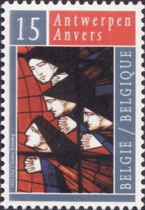Natuurlijk viert Antwerpen ook feest. Voortdurende animatie zal de hele stad bijzonder vrolijk stemmen. Grootse manifestaties zoals de viering van 150 jaar Zoo, Antwerpen diamantstad en de vlootparade Eurosail zorgen voor extra allure. Overigens maakt de stad zich op. Met het oog op 1993 is men te Antwerpen al jaren met aanzienlijke restauratie-, renovatie- en verfraaiingswerken bezig. De Onze-Lieve-Vrouwekathedraal is zo goed als klaar, de Bourlaschouwburg functioneert opnieuw als volwaardig theater en het opgepoetste Centraal Station vormt de ideale toegangspoort voor wie de culturele hoofdstad per trein bezoekt. Tal van andere gebouwen komen op hun beurt opgeknapt uit de steigers vandaan. Hieronder links: Werk van J. Jordaens en rechts: St-Jobretabel (detail) Schoonbroek-Retie.