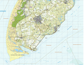 * Doordat de horizontale banen doorlopen over de drie postzegels, ontstaat er over de hele vel-breedte een panoramisch effect, dat het idee van Texels’ ruimte danig versterkt.