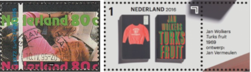 Op het postzegelvel Jaar van het Boek 2016 (nvph 3453) staan naast andere boeken de voor- en achterkant van het boek ‘Turks fruit’ van de schrijver Jan Wolkers op de 2e postzegel, rechtsboven van het postzegelvel.