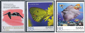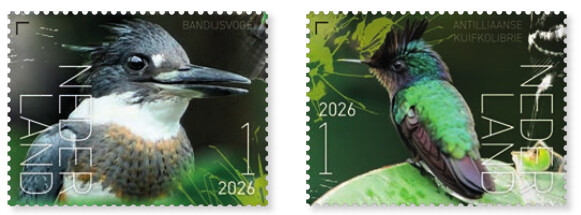 Heb een afbeelding gevonden van twee ‘Beleef de Natuur: Vogels Saba’ postzegels.