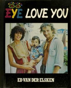 (Op negen van de tien postzegels op het vel zijn steeds twee kleurenfoto’s gecombineerd. Op de tiende postzegel staat naast de afgebeelde foto de titel van Van der Elskens bekendste kleurenfotoboek: EYE LOVE YOU (1977). De foto’s zijn geplaatst op een zwart vlak waardoor de indruk gewekt wordt dat het postzegelvel uit vijf filmstroken bestaat. Op de velrand staan bovenaan de handtekening van Van der Elsken en het logo van het Nederlands Fotomuseum.)
