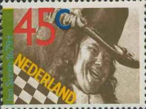Ik vermoed dat de ontwerper van deze Jan Steen postzegel gebruik heeft gemaakt van een zelfportret van Jan Steen uit 1670. Alleen de arm is anders. Dit schilderij hangt in het Rijksmuseum.