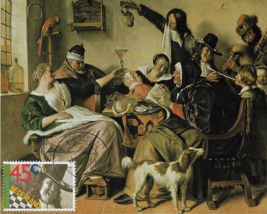 400 jaar geleden in 1626 werd Jan Steen geboren in Leiden. In de postzegelcatalogus kwam ik deze bijzondere kunstschilder drie keer tegen. Hoewel de naam Steen niet naar het Stenen-tijdperk verwijst, heeft zijn naam toch wel met ‘stenen’ te maken.