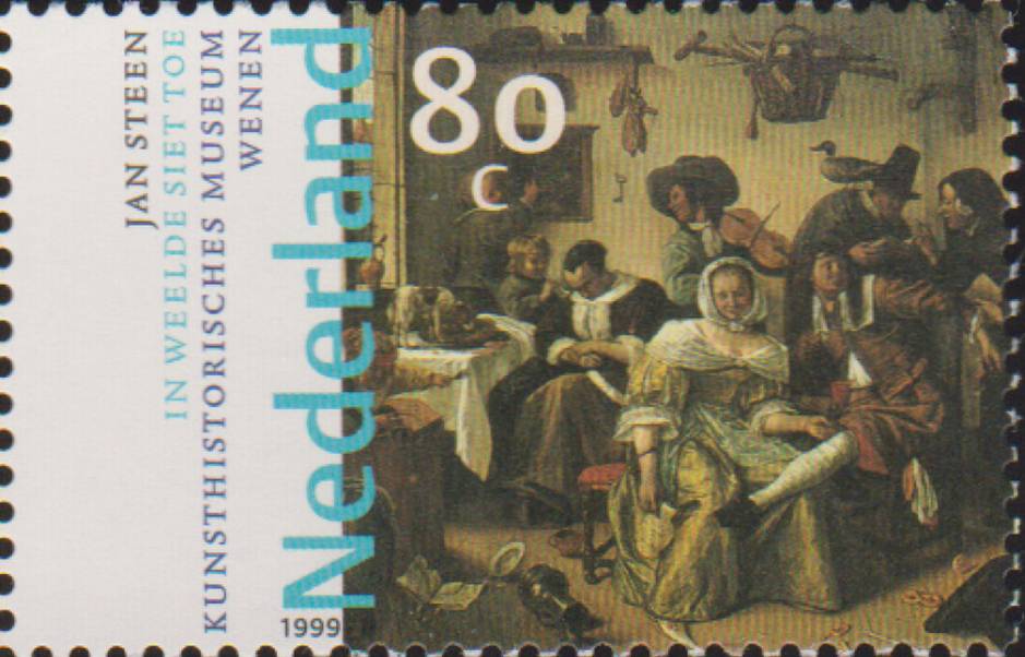 En in 1999 werd er een postzegel over Jan Steen uitgegeven in een vel met tien Nederlandse kunstschilders uit de 17e eeuw. Hierop zien we het schilderij van Jan Steen genaamd ‘In weelde siet toe’. Dit schilderij is te zien in het Kunsthistorisch museum in Wenen.