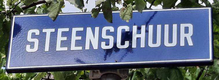 Het Steenschuur is één van de oudste grachten van Leiden, gegraven in de 13e eeuw als eerste verdedigingsgracht. Het Steenschuur is vermoedelijk vernoemd naar een schuur waar stenen lagen opgeslagen voor de bouw van het Gravensteen. Stenen waren in de tijd erg duur. Het kwam zelfs voor dat rechters bij een overtreding een boete gaven van een steen. Van dat geld werd dan een steen gekocht, die werd gebruikt voor de bouw. Daar komt de uitdrukking vandaan ‘een steentje bijdragen’. Men woonde in die tijd in huis van hout. Had je al een stenen huis, dan was je ‘steenrijk’. Had je geen geld voor een houten huis, dan woonde je op straat en was je dus ‘straatarm’. ‘Steenrijk en straatarm’ is nu een succesvolle tv-serie.