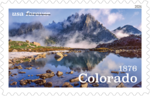 USPS herdenkt de 150e verjaardag van de toetreding van Colorado tot de Verenigde Staten met de uitgave van een speciale postzegel, de zogenaamde ‘Colorado Statehood’-zegel, met daarop een foto van Jagged Mountain, gemaakt door natuurfotograaf John Fielder. De 38e staat, bekend om zijn adembenemende landschappen en de ontzagwekkende schoonheid van de Rocky Mountains, trad 100 jaar na de onafhankelijkheidsverklaring van de Verenigde Staten van het Verenigd Koninkrijk toe tot de Unie.
