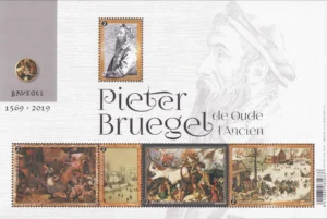 Hieronder de zegel als onderdeel van het blok. In 2019 is het 450 jaar geleden dat Pieter Bruegel de Oude overleed. Hij wordt geëerd met een Bruegel-jaar.