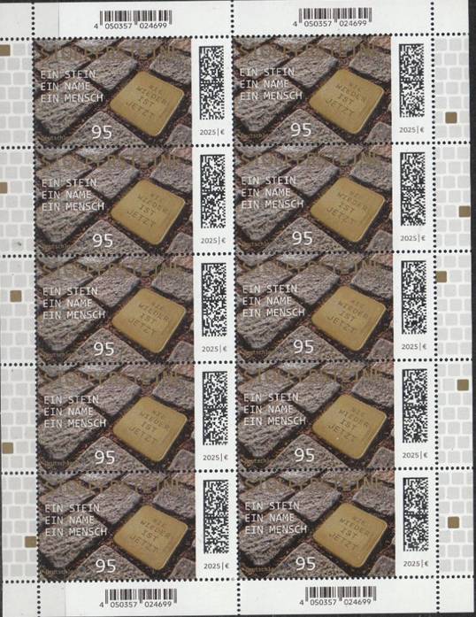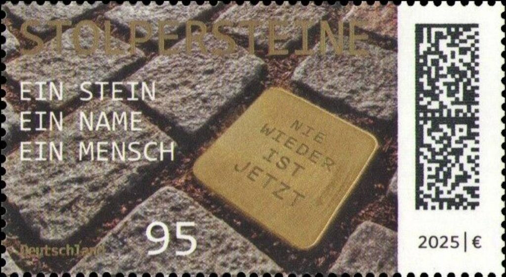 De Deutsche Post gaf eind 2025 een postzegel uit over ‘struikelstenen’ met daarop de tekst: Nie wieder ist jetzt (nooit meer is nu). En: Ein Stein; Ein Name; Ein Mensch (een steen, een naam, een mens). Dit wordt een indringend verhaal.