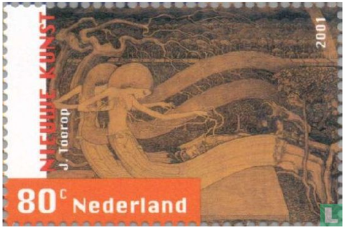 De naam van Jan Toorop doet misschien één stijl vermoeden, maar zijn werk laat juist een verrassende veelzijdigheid zien. In deze blog verkennen we de verschillende ‘werelden’ waarin hij zich bewoog, van impressionisme tot symbolisme. Aanleiding is de tentoonstelling ‘De werelden van Jan Toorop’ in het Singer Museum Laren (tot 11 mei te zien), waar zijn ontwikkeling mooi zichtbaar wordt. Via postzegels kijken we mee naar hoe Toorop steeds opnieuw vorm gaf aan zijn kunst – nieuwsgierig, onderzoekend en altijd in beweging.